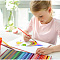 Карандаши имеют узнаваемый запатентованный дизайн Grip и покрыты противоскользящими шашечками. Водорастворимый грифель карандашей состоит из высококачественных пигментов ярких оттенков. Мягкость грифеля обеспечивает легкое скольжение и комфортное рисование на бумаге любого типа. Благодаря специальной технологии проклеивания грифеля (SV), грифель не ломается при падении и затачивании.