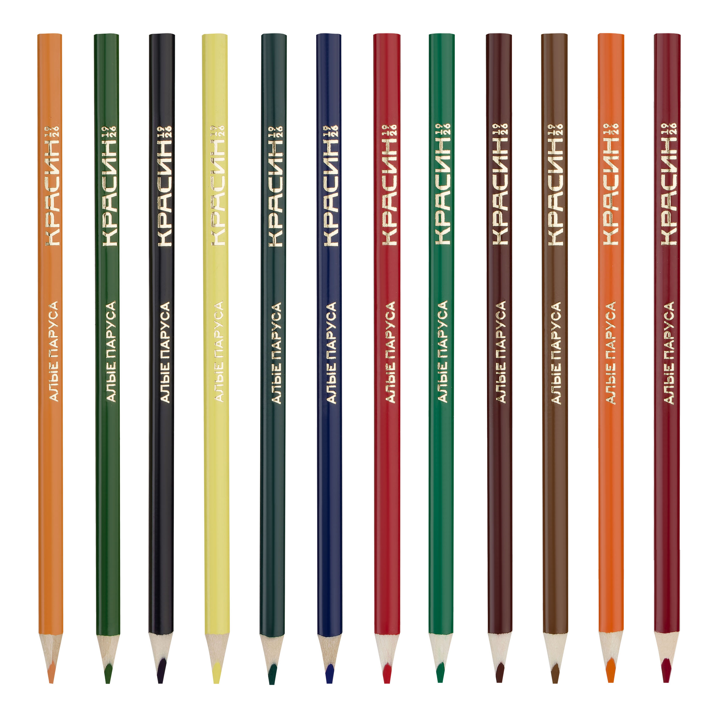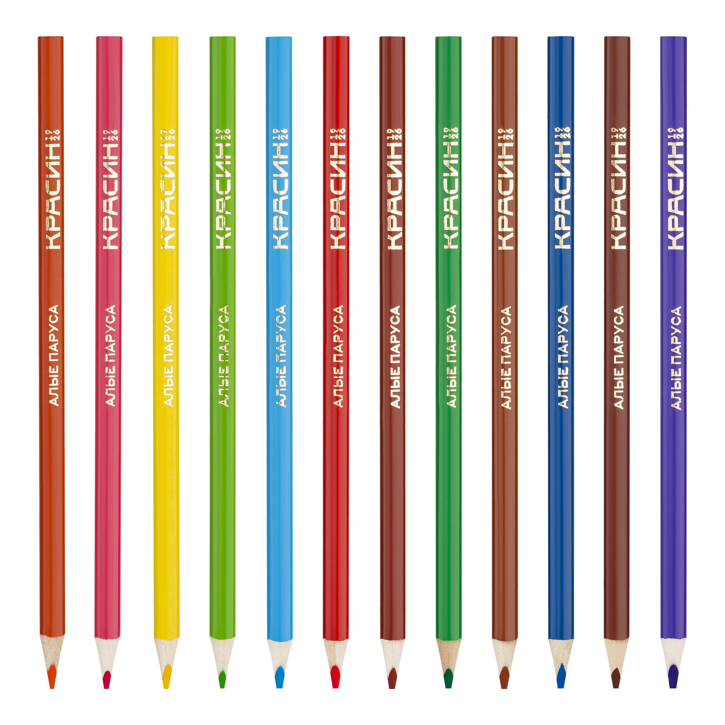Набор цветных карандашей «Красин» серии «Алые паруса» – отличный помощник на уроках рисования и прекрасный инструмент для детского творчества. В наборе 36 цветов. Корпус карандашей эргономичной трёхгранной формы изготовлен из натуральной древесины липы. При производстве используется специальная технология склейки, которая увеличивает прочность и надежность заклейки стержня в карандаше, предохраняет его от повреждений при падении. Цветные карандаши легко и ровно затачиваются, не ломаются и не крошатся во время заточки и рисования. Благодаря высококачественному грифелю класса А карандаши мягко рисуют. Рисунки получаются яркими, насыщенными и устойчивы к выцветанию. Карандаши уже заточены и готовы к использованию. Они имеют диаметр 7 мм и длину 177 мм. Упакованы в плотную матовую картонную коробку с европодвесом. Яркая картинка с кораблём вдохновит на творчество детей школьного и дошкольного возраста. <br/>• Количество цветов: 36;<br/>• Заточенный грифель: да;<br/>• Форма корпуса: трёхгранная.