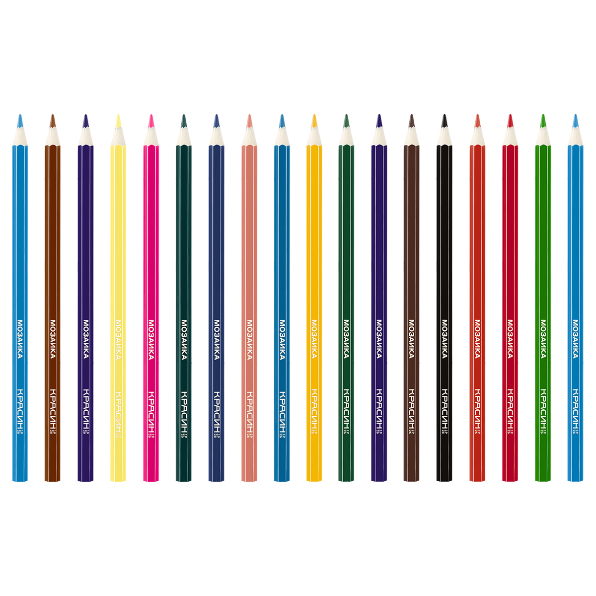 Набор цветных карандашей «Красин» серии «Мозаика» – отличный помощник на уроках рисования и прекрасный инструмент для детского творчества. В наборе 18 цветов. Карандаши имеют шестигранную форму корпуса, легко и ровно затачиваются. Высококачественный грифель диаметром 2,65 мм обеспечивает мягкость письма и рисования. Благодаря качественным пигментам в составе карандаши имеют яркие и насыщенные цвета. Изготовлены по технологии двойной тотальной склейки DSA, которая увеличивает прочность и надежность заклейки стержня в карандаше, предохраняет его от повреждений при падении. Корпус выполнен из химически необработанной российской древесины – липы. Карандаши поставляются заточенными. Произведены в России.