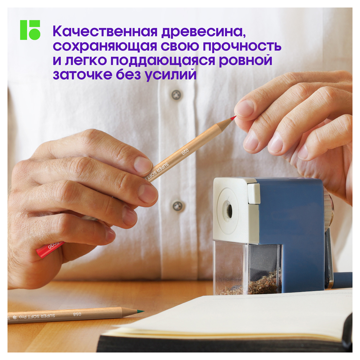 Уценка. Ограничений в дальнейшем использовании нет. Повреждения товара нет.<br/>Причина уценки: механические повреждения упаковки<br/><br/><br/>Цветные карандаши Berlingo SuperSoft. Pro идеально подойдут для творчества. SuperSoft. Pro – премиальная линейка цветных карандашей Berlingo высшего качества. В наборе 72 ярких насыщенных цвета, обладающих превосходной смешиваемостью. Цвет на каждом карандаше указан на английском языке.<br/>В карандашах используется грифель высочайшего стандарта качества 8А, являющегося максимальным для нехудожественных цветных карандашей. Безупречное и комфортное раскрашивание обеспечивает увеличенная до 4 мм толщина грифеля. При производстве грифеля использована уникальная формула и технология, в результате которых достигается одновременно удивительная мягкость письма и прочность, позволяющая изделию выдерживать даже сильное нажатие под углом 45 градусов. Мягкость письма можно сравнить с рисованием маслом и пастелью.<br/>Карандаши стойкие к повреждениям – специальная проклейка предотвращает поломку грифеля при падении. Круглый корпус диаметром 7 мм выполнен из древесины высшего качества, прошедшей тщательную обработку. Материал, сохраняющий свою прочность и легко поддающийся ровной заточке без усилий. Уникальная антибактериальная обработка на специализированном оборудовании гарантирует безопасное использование продукции детьми.<br/>Карандаши упакованы в плотную матовую картонную коробку с покрытием soft-touch и склеенным европодвесом. Пластиковые подложки-треи черного цвета помогут хранить карандаши на столе. В подарок в каждой упаковке есть карта цветов на художественной бумаге для выкрасов и теста смешиваемости.<br/>• Количество цветов: 72;<br/>• Материал корпуса: дерево;<br/>• Форма корпуса: круглая<br/><br/>Уцененный товар подлежит возврату или обмену в случае обнаружения недостатков, о которых покупатель не был проинформирован перед покупкой