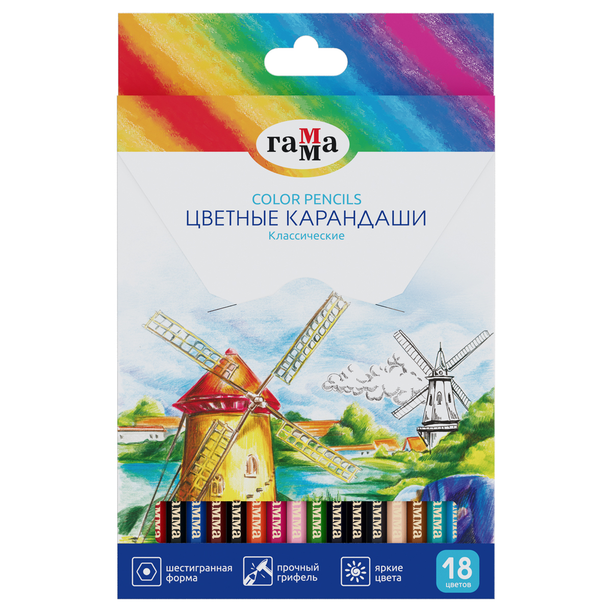 Карандаши цветные Гамма "Классические", 18цв., заточен., картон. упак., европодвес