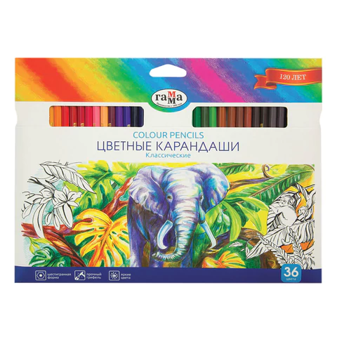 Карандаши цветные ГАММА "Классические", 36 цветов, шестигранные, натуральное дерево, 05091805, 050918_05