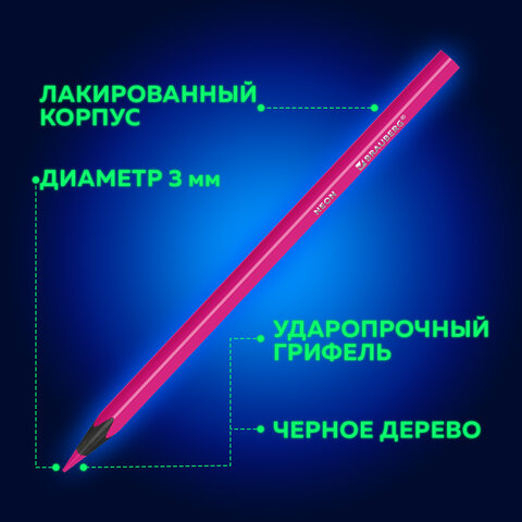 Трехгранные цветные карандаши высокого качества из чёрного дерева BRAUBERG серии NEON обеспечивают гладкое письмо благодаря мягкому грифелю. Особое качество красящего пигмента гарантирует яркие неоновые цвета.