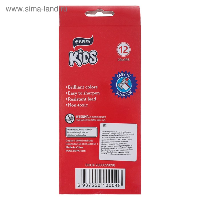 Карандаши 18 цветов в картонной коробке, треугольные, деревянные, Пастель МИКС
