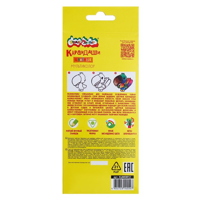 Карандаши 12 цветов в картон коробке, ароматизированные,треугольные, деревян. Фрукты МИКС
