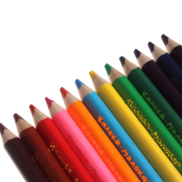 Карандаши 12 цветов в картонной коробке, шестигранные, деревянные,Цветы на чёрном МИКС