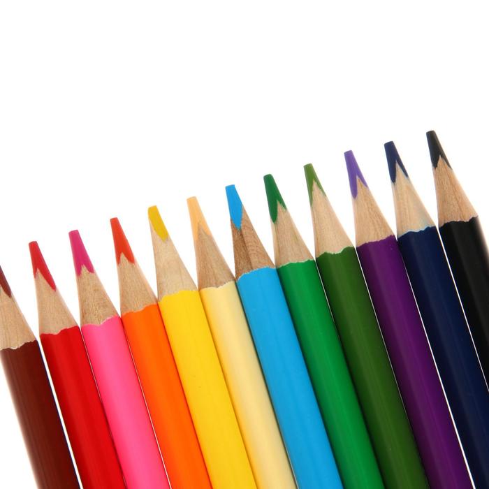 Карандаши 12 цветов в картонной коробке, шестигранные, деревянные,Цветы на чёрном МИКС