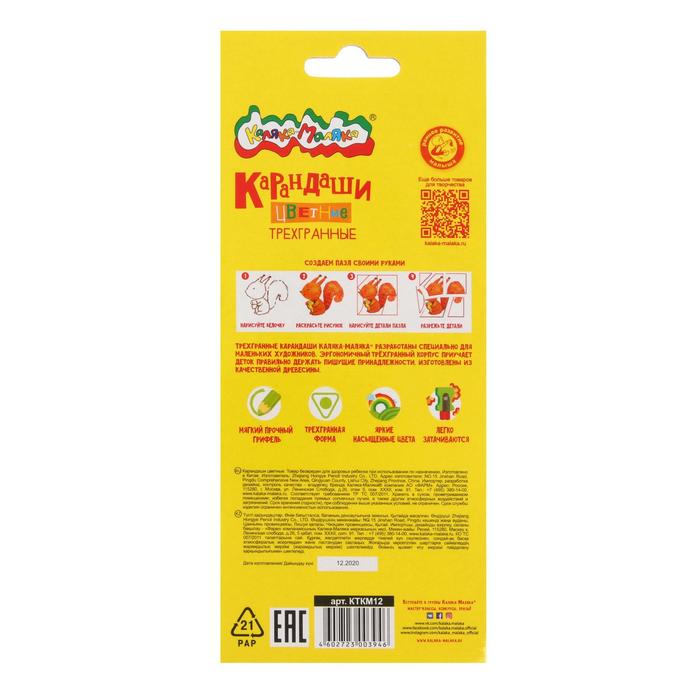 Карандаши 18 цветов в картонной коробке, треугольные, деревянные, Пастель МИКС