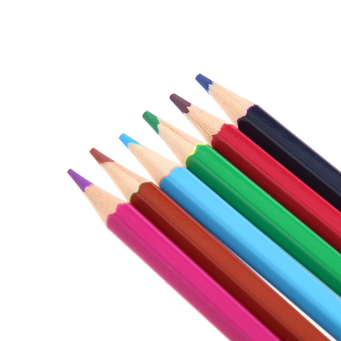 Карандаши 12 цветов в картонной коробке, шестигранные, деревянные,Цветы на чёрном МИКС