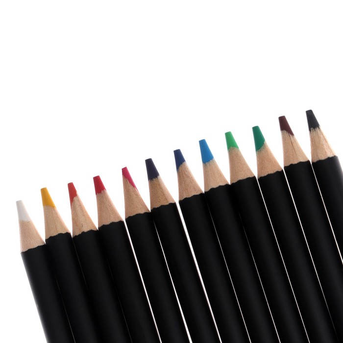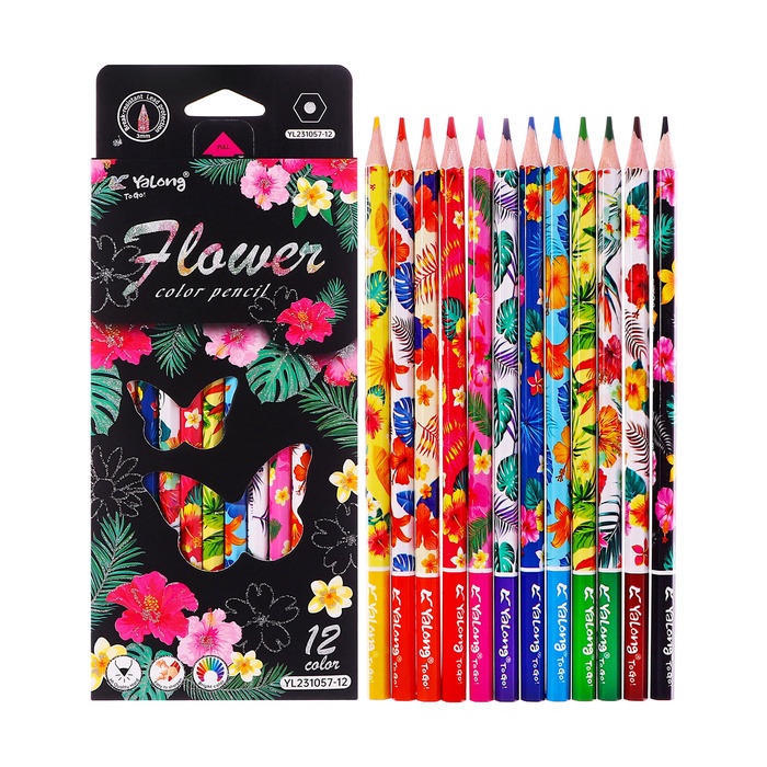 Карандаши 12 цветов в картонной коробке, шестигранные, деревянные,Цветы на чёрном МИКС