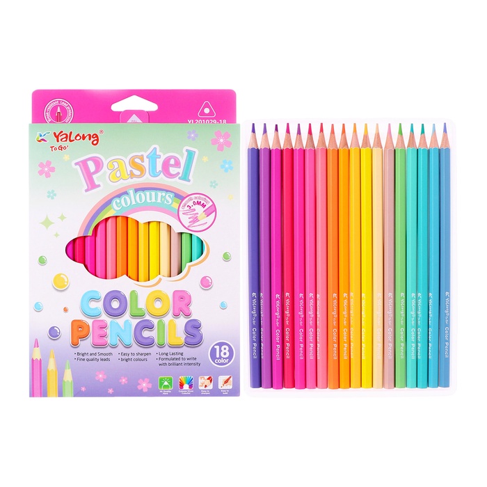 Карандаши 18 цветов в картонной коробке, треугольные, деревянные, Пастель МИКС
