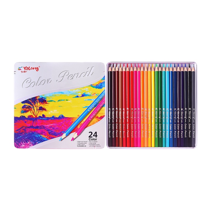 Карандаши 24 цвета, в металл пенале, треугольные, деревянные, Пейзаж МИКС
