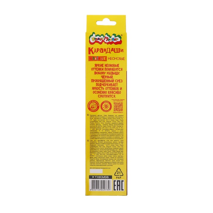 Карандаши 18 цветов в картонной коробке, шестигранные, деревянные,Цветы на чёрном МИКС