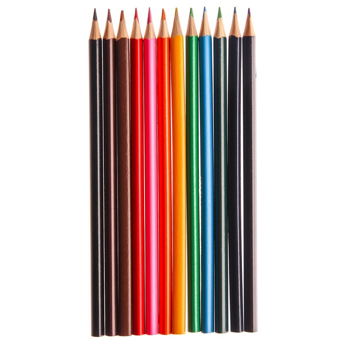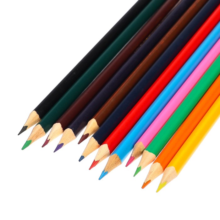 Карандаши 12 цветов в картонной коробке, шестигранные, деревянные,Цветы на чёрном МИКС
