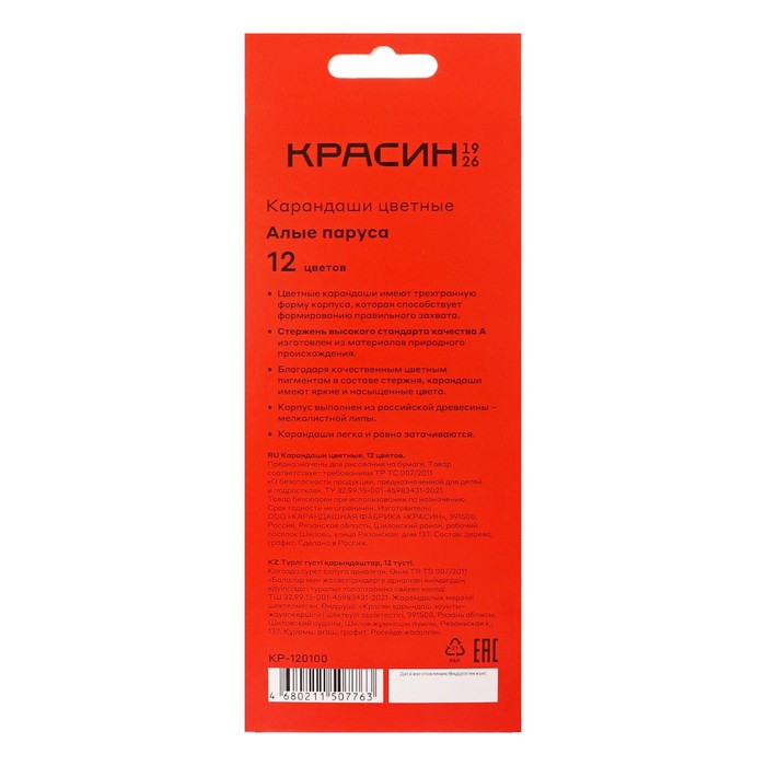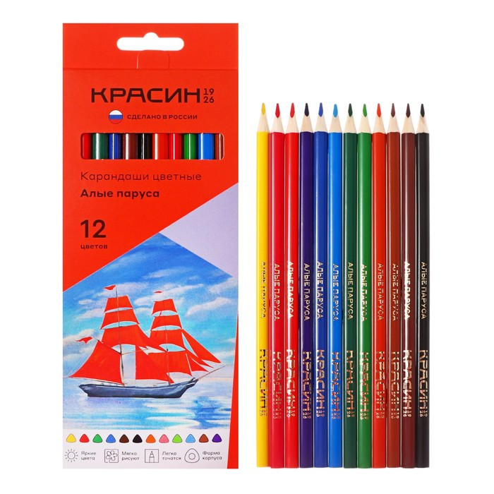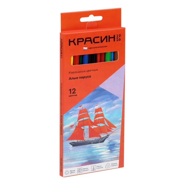 Карандаши 24 цвета в картонной коробке, треугольные, деревянные, Пастель МИКС