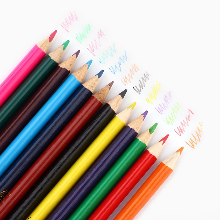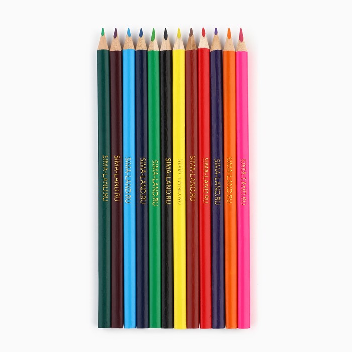 Карандаши 12 цветов в картонной коробке, шестигранные, деревянные,Цветы на чёрном МИКС