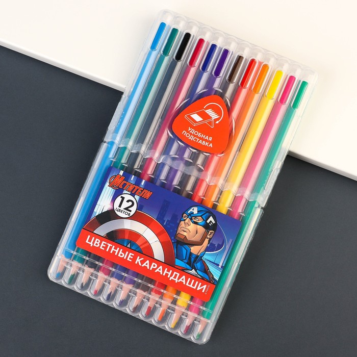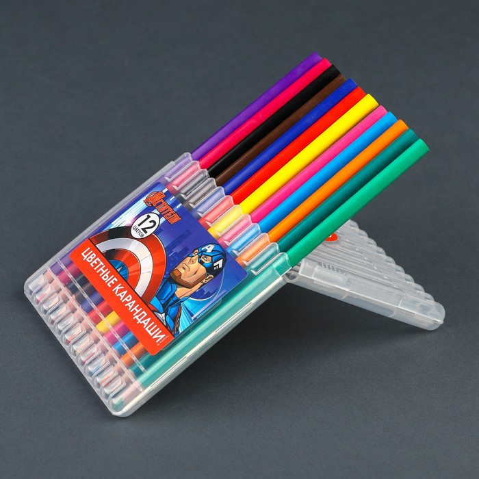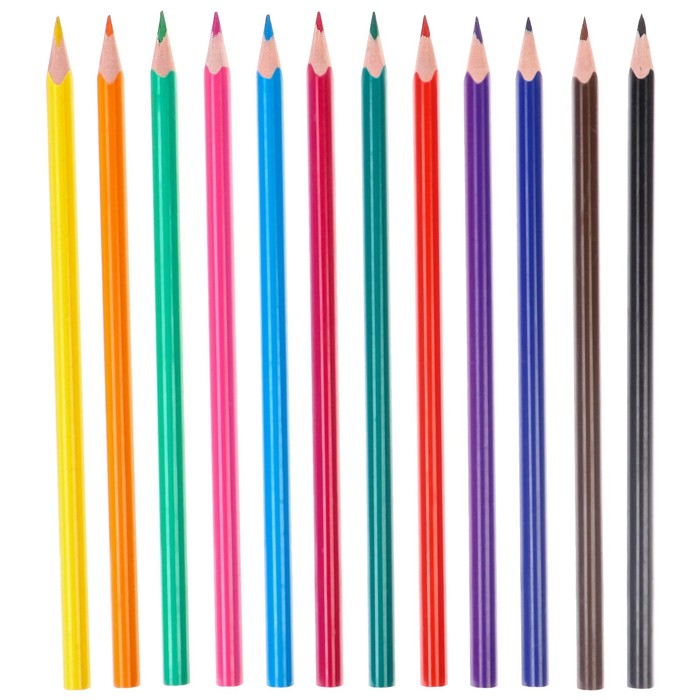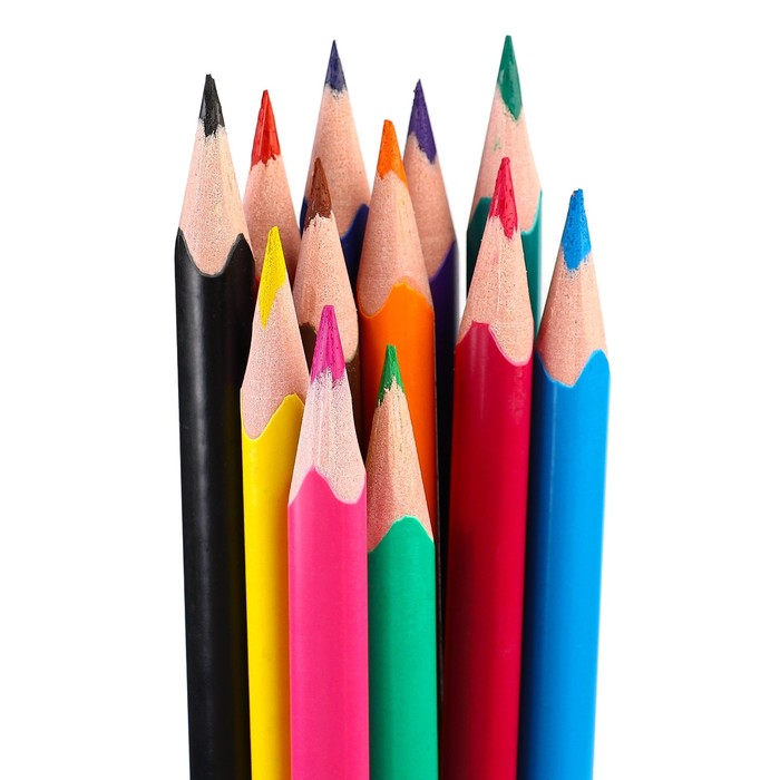 Карандаши 12 цветов в картонной коробке, шестигранные, деревянные,Цветы на чёрном МИКС