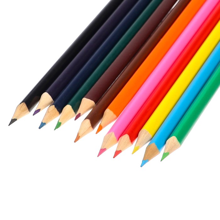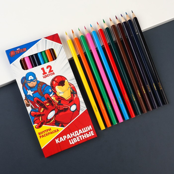 Карандаши 12 цветов в картонной коробке, шестигранные, деревянные,Цветы на чёрном МИКС