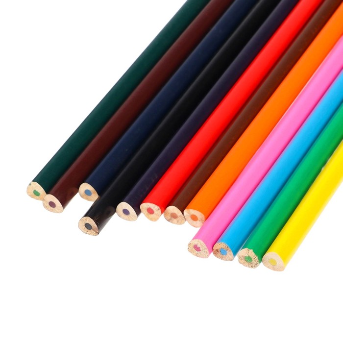 Карандаши 24 цвета в картонной коробке, треугольные, деревянные, Пастель МИКС