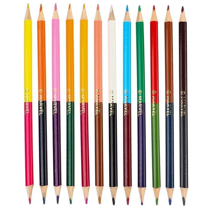 Карандаши 24 цвета в картонной коробке, шестигранные, деревянные,Цветы на чёрном МИКС