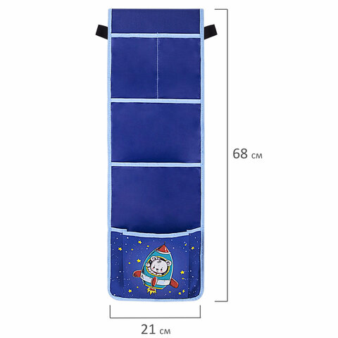 Изготовлен из плотного полиэстера, хорошо держит форму и удобен в эксплуатации, яркий дизайн, при изготовлении используется качественная полноцветная печать. Размер органайзера с кармашками 21х68 см, крепится на дверку с помощью резинок по бокам.
