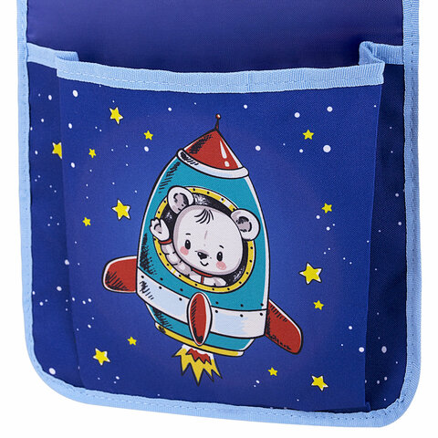 Органайзер имеет 5 карманов: 2 маленьких кармашка для мелочей, 2 средних и 1 кармашек увеличенного размера за счет складки для объема. Использование кармашков поможет приучить ребенка к порядку.