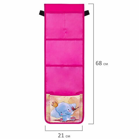 Изготовлен из плотного полиэстера, хорошо держит форму и удобен в эксплуатации, яркий дизайн, при изготовлении используется качественная полноцветная печать. Размер органайзера с кармашками 21х68 см, крепится на дверку с помощью резинок по бокам.