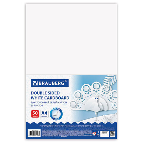 Набор белого картона BRAUBERG предназначен для творчества и хобби, рекомендован для уроков труда и технологии. Может использоваться детьми с трехлетнего возраста.