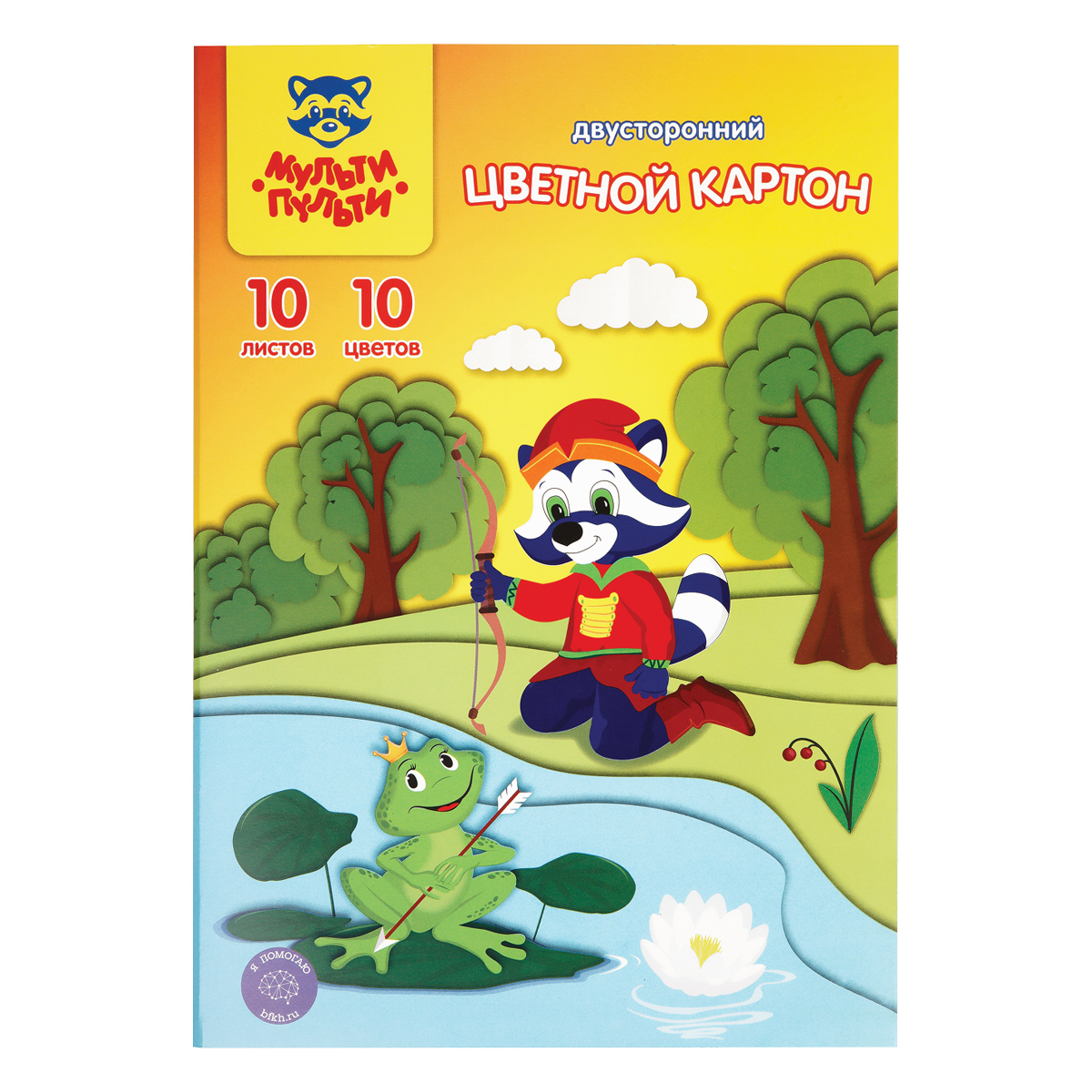 УЦЕНКА - Картон цветной А4 двустор., Мульти-Пульти, 10л., 10цв., мелованный, в папке, "Енот в волшебном мире"