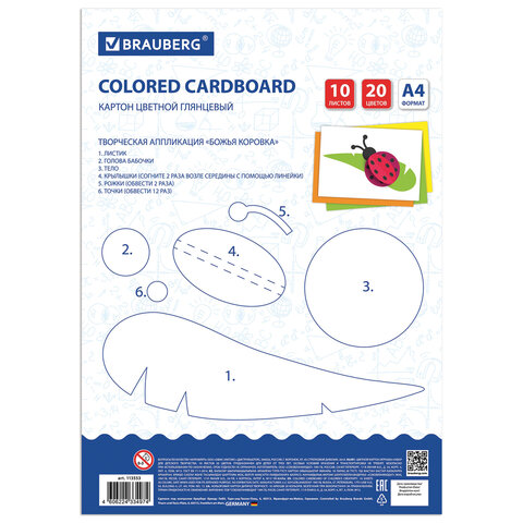 Набор цветного картона BRAUBERG предназначен для творчества и хобби и может использоваться детьми с трехлетнего возраста. Картон рекомендован для уроков труда и технологии. Творческая инструкция по созданию аппликации на обороте.