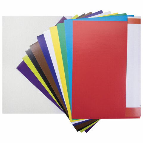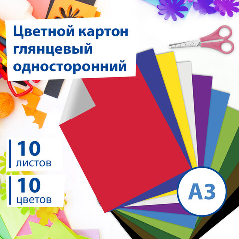 Мелованный картон с улучшенной прокраской обладает плотностью 200 г/м2. Легко режется ножницами, сгибается и клеится. Внутренний блок состоит из 10 листов формата А3 (297х420 мм) и 10 цветов.