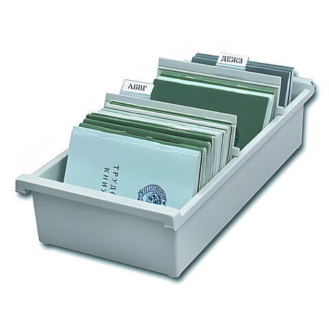 Картотека пластиковая ФОРМАТ А6 (148х105 мм) горизонтальная на 1300 карт, серая, HAN (Германия), НА956/0/11