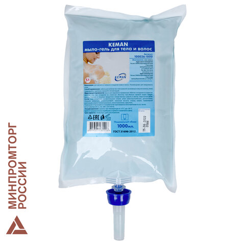 Картридж с жидким мылом-гелем для тела и волос одноразовый (Система S1), 1 л, KEMAN, 100026-1000
