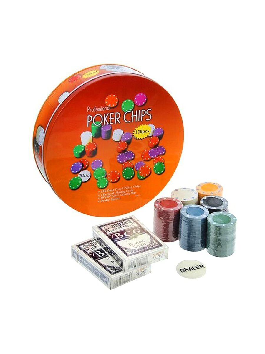 Набор для игры в покер " KWELT " 121 фишка, 2 колоды карт, коврика для игры 60*90см, металическая коробка 21*5,5см