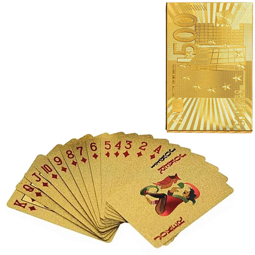Карты игральные покерные " KWELT " 500 Евро золотые, 54шт/колода пластик, пластиковая упаковка 9*6*2см