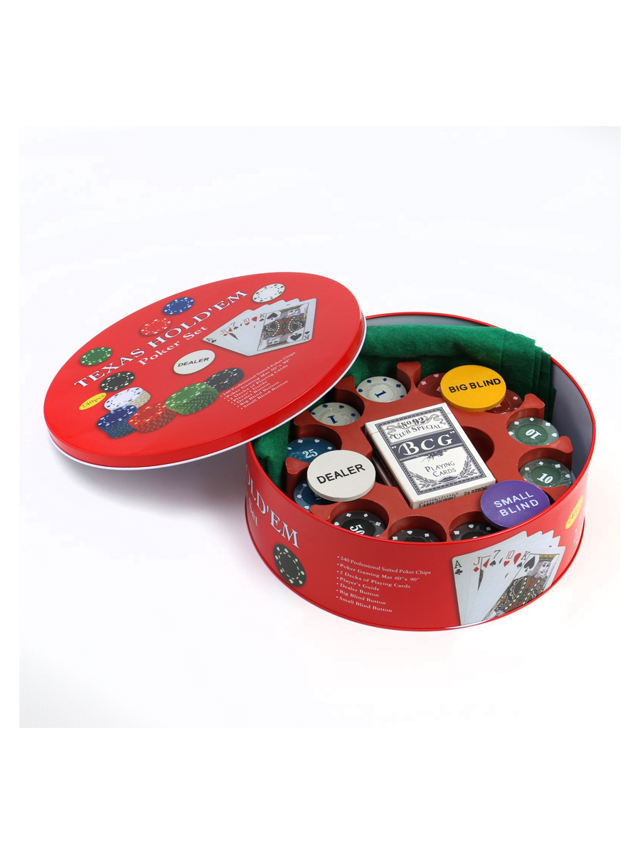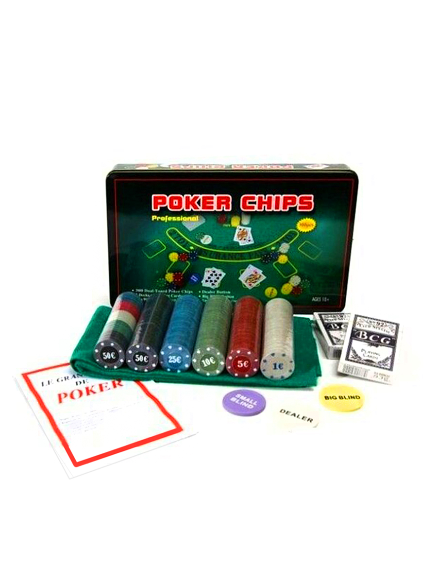 Набор для игры в покер " KWELT " 243 фишки, 2 колоды карт, пластиковая подставка для фишек и карт, коврика для игры 60*90см, металическая коробка 25*9см