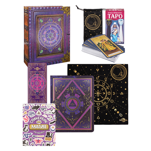 Набор Таро " Миленд " Фиолетовый, в комплекте: колода- 78 карт, коробка-книга, мешок, скатерть, записаная книга, стикербук, 18+