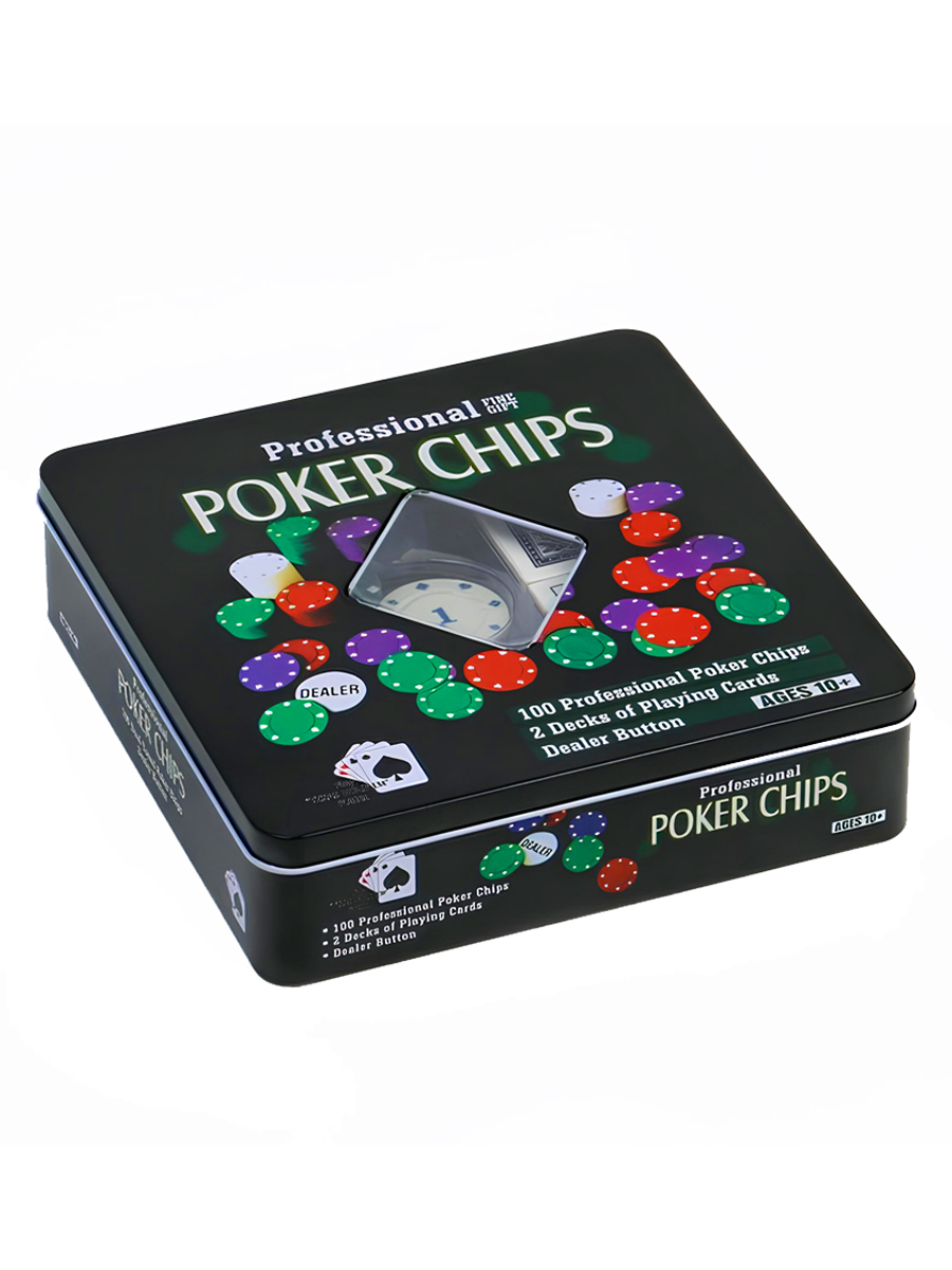 Набор для игры в покер " KWELT " 101 фишка, 2 колоды карт, металическая коробка 20*20*5см