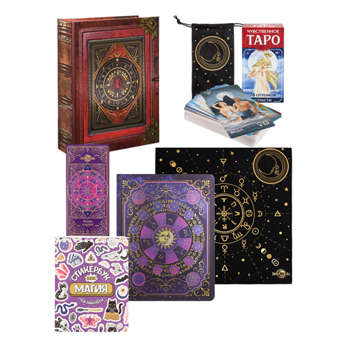 Набор Таро " Миленд " Красный, в комплекте: колода- 78 карт, коробка-книга, мешок, скатерть, записаная книга, стикербук, 18+