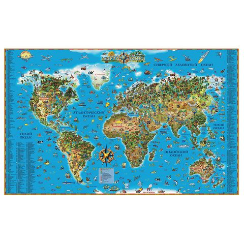 Карта настенная для детей "Мир", размер 116х79 см, ламинированная, 629, 450