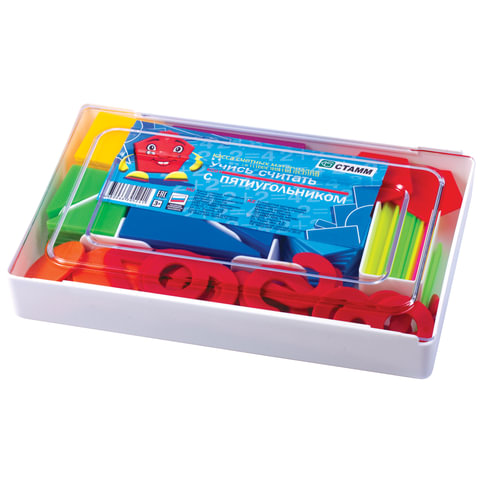 Обучающая и развивающая касса. Предназначена для развития навыков счёта у детей. Пластиковый короб обеспечивает удобное хранение. Состав кассы: геометрические фигуры, цифры, арифметические знаки и счетные палочки.