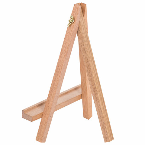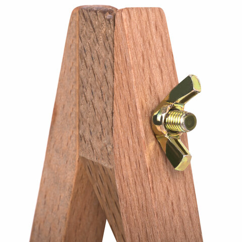 Изготовлен из натурального бука, пропитанного маслом. Мольберт настольный прост в установке. Верхнее крепление обеспечивает жесткую фиксацию ножки, что позволяет отрегулировать угол наклона холста. Максимальная высота размещаемого холста - 25 см. Размер в разложенном виде - 18х19х23 см. Упакован в термоусадку.