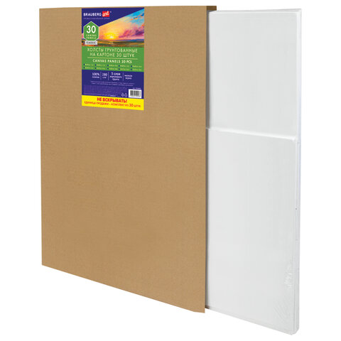 Холсты на картоне НАБОР 10 штук (30*40 см), хлопок, грунт, 280 г/м2, BRAUBERG ART CLASSIC, 192659