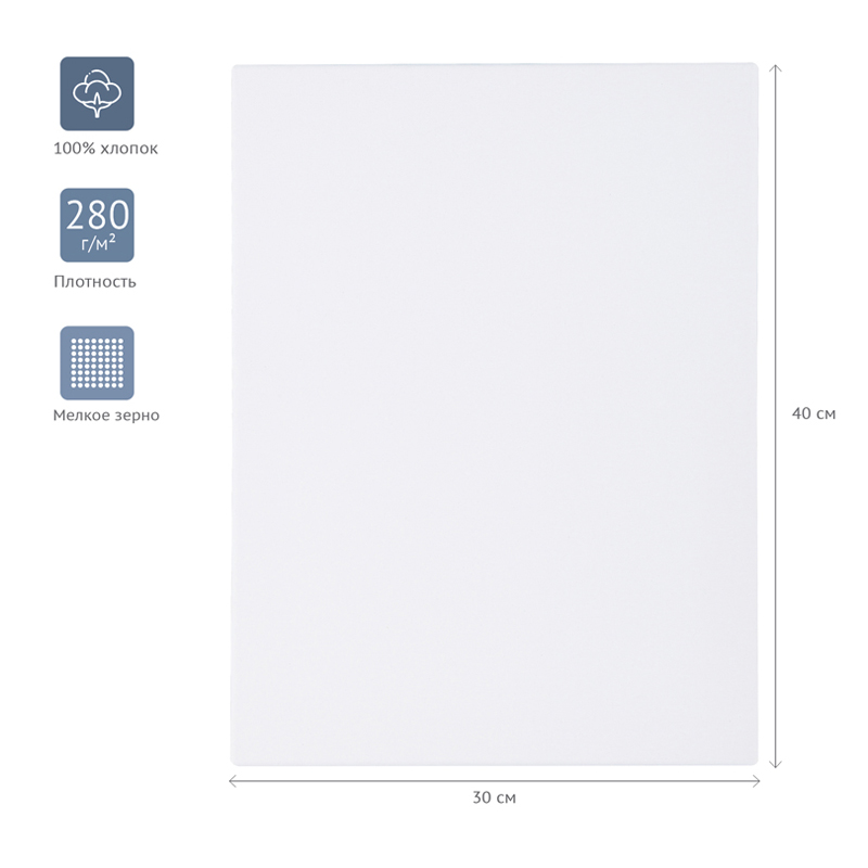 Холст на подрамнике BRAUBERG ART BASIC 30*40 см, 280 г/м2, хлопок, мелкое зерно, грунт, 192666