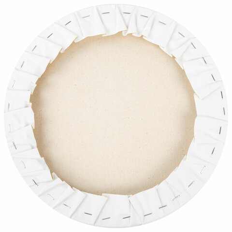 Изготовлен из 100% хлопка плотностью 380 г/м2, покрытого акриловым грунтом. Хлопковое полотно характеризуется ровной поверхностью со слабовыраженным рельефом. Односторонний трехслойный акриловый грунт позволяет сохранить цвета неизменными, не допуская их прожухания. Холст круглой формы на подрамнике полностью готов к работе.