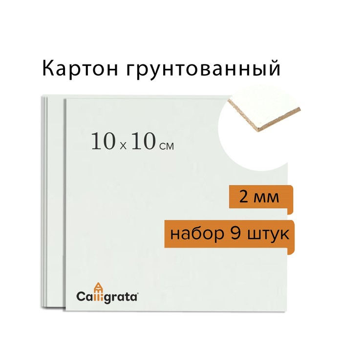 Картон грунтованный акриловый 10 х 10 cм, 2 мм, Calligrata, в наборе 9 штук