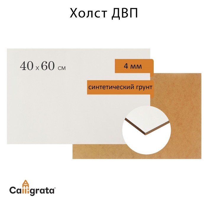 Основа (ДВП) грунтованная 40 х 60 см, 4.0 мм, синтетический грунт, белый