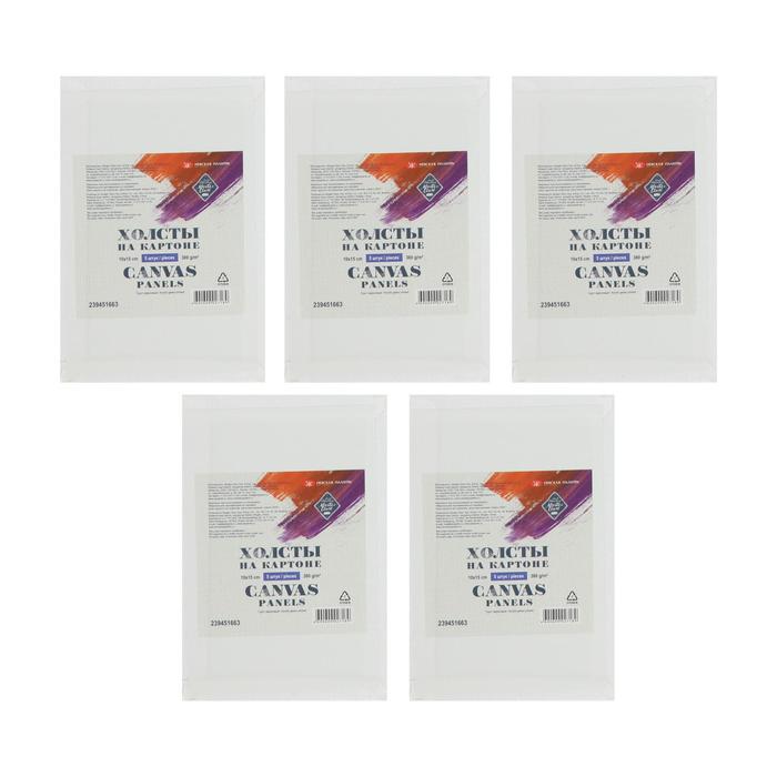Холст на картоне, 10 х 15 см, хлопок 100%, НАБОР 5 штук, акриловый грунт, мелкозернистый, 380 г/м², ЗХК «Мастер Класс»