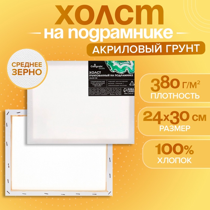 Холст на подрамнике 1,6х24х30 см, хлопок 100%, акриловый грунт, среднезернистый, 380г/м²