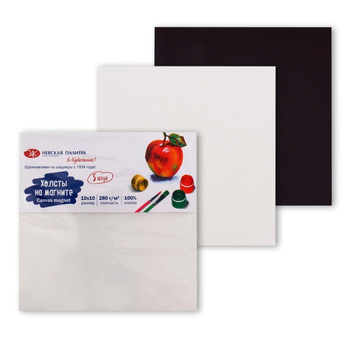 Холст-магнит набор 5 штук, 3 мм, 10 х 10 см, 280 г/м², квадратные, пакет с европодвесом